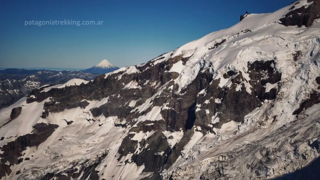 Aparecieron las primeras vistas del Glaciar Blanco, o lo que queda. Tenía vistas al Pico Chileno y el Internacional estaba muy encima. También escuché los primeros truenos del hielo: ese sonido seco y grave que marca que algo se acomoda en el glaciar.