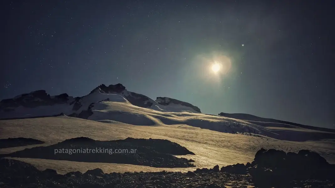 Quería luz hasta último momento. Cené temprano y me metí en la bolsa. El cielo estaba limpio y no tardé en quedarme dormido. Cerca de las tres me despertó la luz de la luna iluminando los glaciares del Tronador.