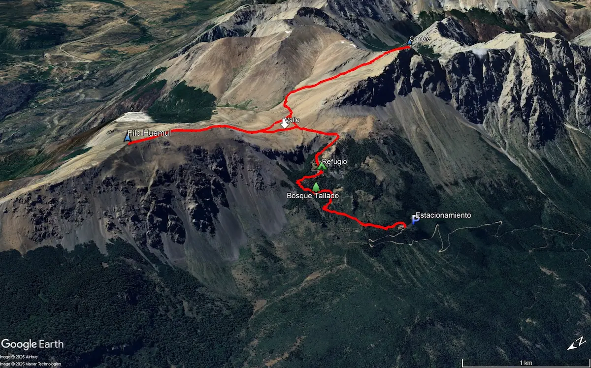 - Tipo de sendero: Ida y vuelta con posibilidad de desvíos (Filo Huemul).