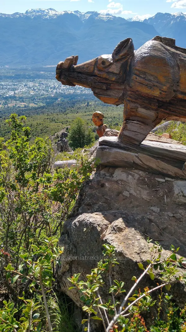El Bosque Tallado nació después del gran incendio de 1978 que arrasó parte de la ladera del Piltriquitrón. Veinte años más tarde, un grupo de escultores locales y de distintas partes del país transformó los restos de árboles quemados en tallas de madera. Así, lo que era un bosque muerto se convirtió en un espacio artístico al aire libre, con decenas de esculturas que conviven con el paisaje y que siguen sumándose con el tiempo.