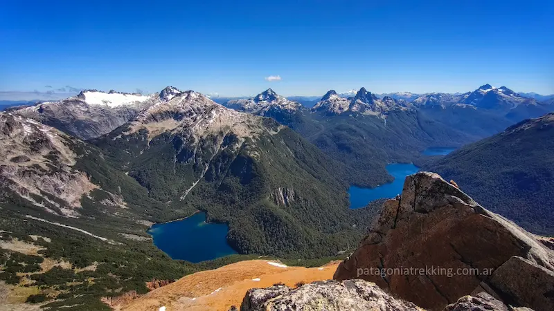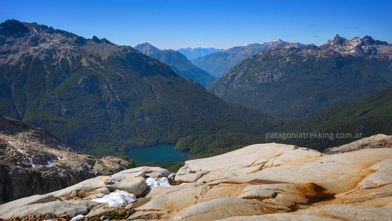 El rompecabezas se iba armando. Desde ahí encontré el recorte inconfundible del Piltriquitrón y adiviné la cumbre del Hielo Azul. Hacia el sur, el Lago Lahuán y el espacio del refugio Los Laguitos. Al lado del Soberanía, asomaba el Lago Montes.