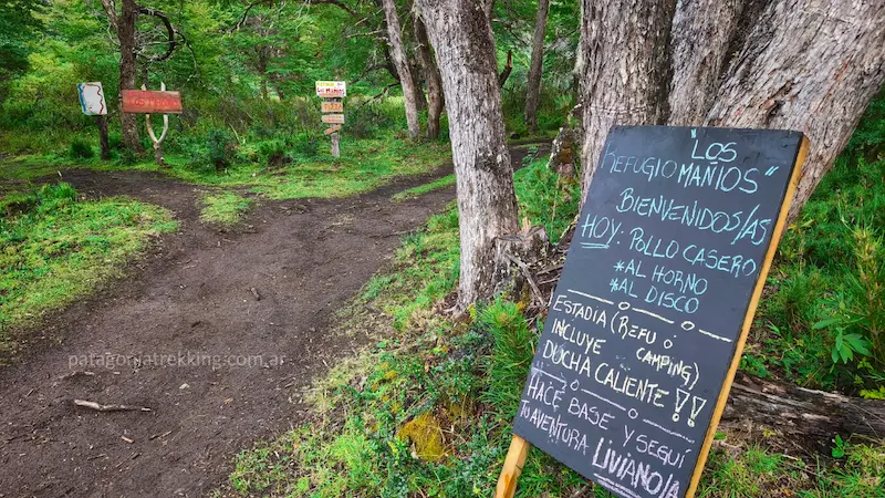 Cerca de las 10:30 llegué al ingreso del Refugio Los Mañíos. En realidad, tomé el desvío porque podría haber seguido caminando por el sendero principal, pero me tentó el cartel que anunciaba tortas fritas.