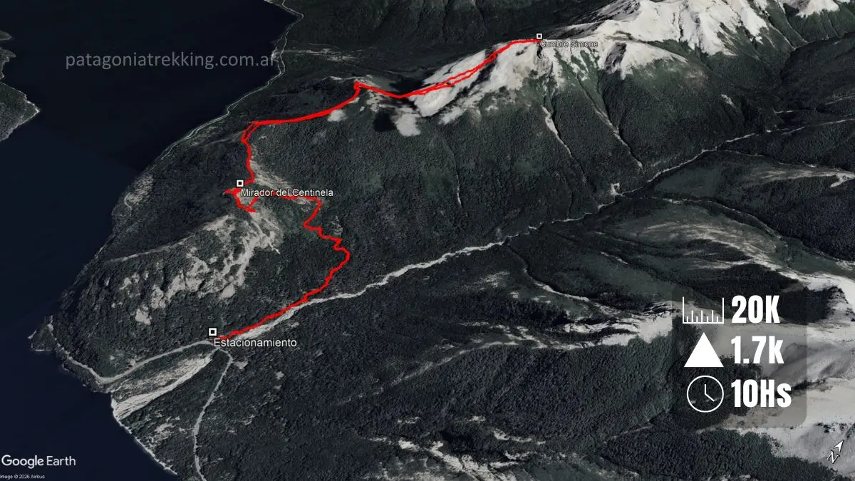 El cerro Centinela es, en la práctica, un balcón sobre la Ruta 40, entre Villa La Angostura y Bariloche. El sendero nace en la desembocadura del río Huemul, en el inicio del brazo homónimo del lago Nahuel Huapi.