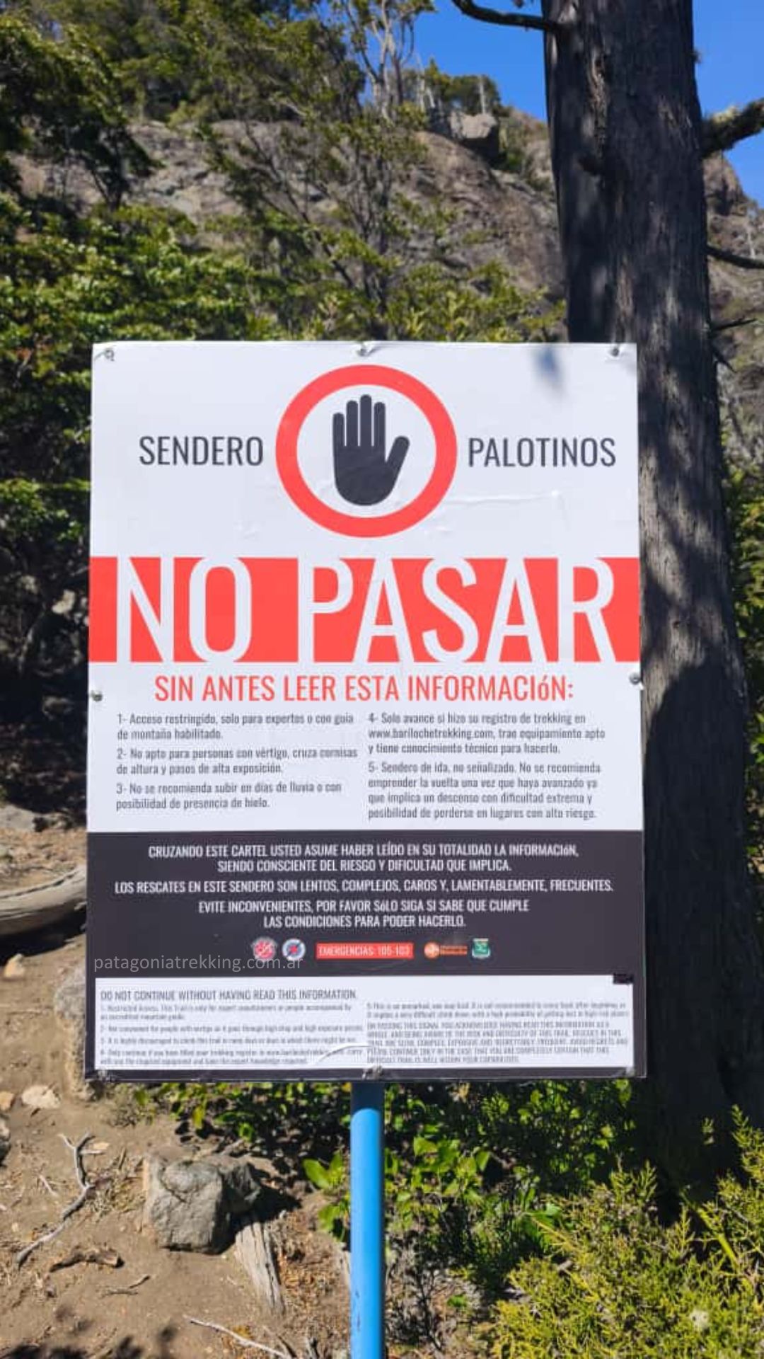 En el cartel se señala que el trayecto hacia Palotinos implica terreno exigente y elevada complejidad, e históricamente ha sido escenario de rescates.