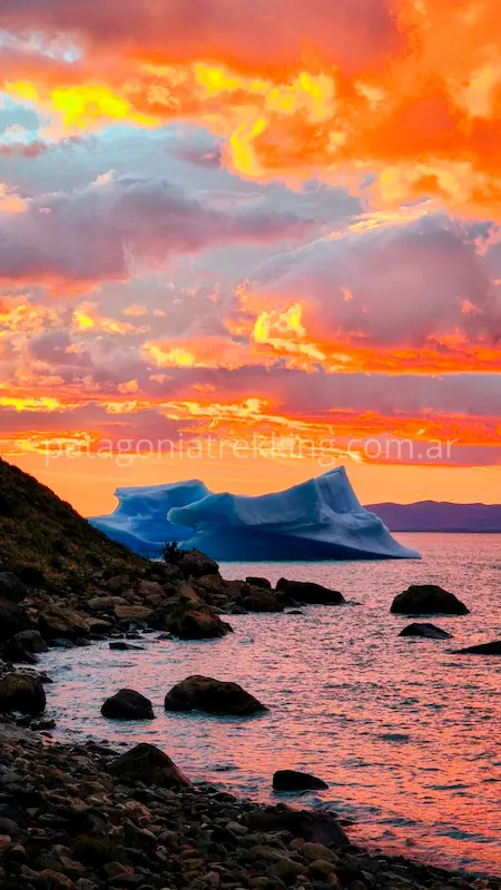 La buena noticia era que la mañana estaba impecable. El cielo se encendió pintando las nubes con unos colores que pocas veces vi. El témpano se había acercado a la costa durante la noche y me sirvió de modelo para las fotos.