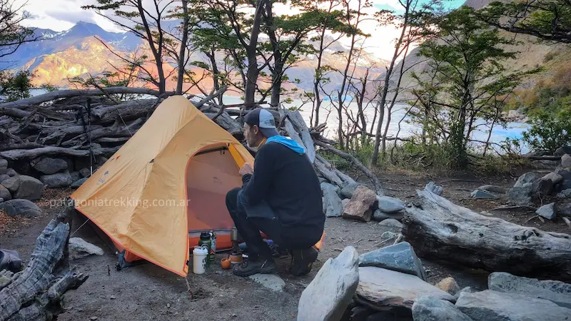 El recorrido: Es la etapa de aproximación y la más protegida del itinerario. El sendero se inica en la Seccional del Parque Nacional Los Glaciares a pasos el ingreso a El Chaltén. Sube moderadamente primero por una zona de estepa y luego se interna en un bosque de lengas hasta los 1000 msnm. El desafío principal es el faldeo de la Loma de las Pizarras, donde el terreno se abre y queda expuesto al viento antes de bajar hacia el valle del río Túnel. Allí solamente hay algunos mallines y vadeos. Es un día para acostumbrarse al peso de la mochila y entrar en ritmo.