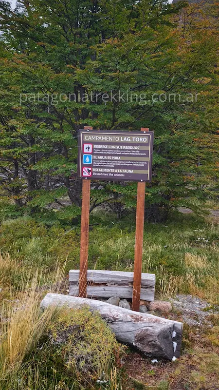 Atravesé una última zona boscosa y llegué al cartel que indicaba el lugar del campamento Laguna Toro.