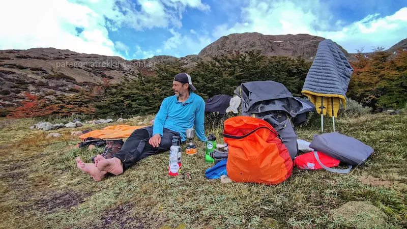 No hay refugios, no hay proveedurías, no hay señal de celular. Tenés que llevar comida para los 4 días (y un extra por si el clima te encierra), equipo de reparación e, idealmente, un comunicador satelital.