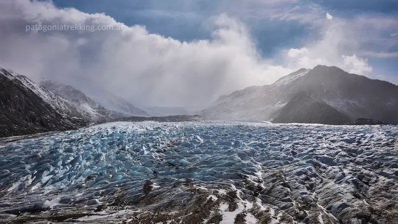 En cuanto inicié la subida hacia la siguiente etapa, aparecieron las primeras ráfagas. Se acercaba el tránsito sobre el Glaciar Túnel Inferior.