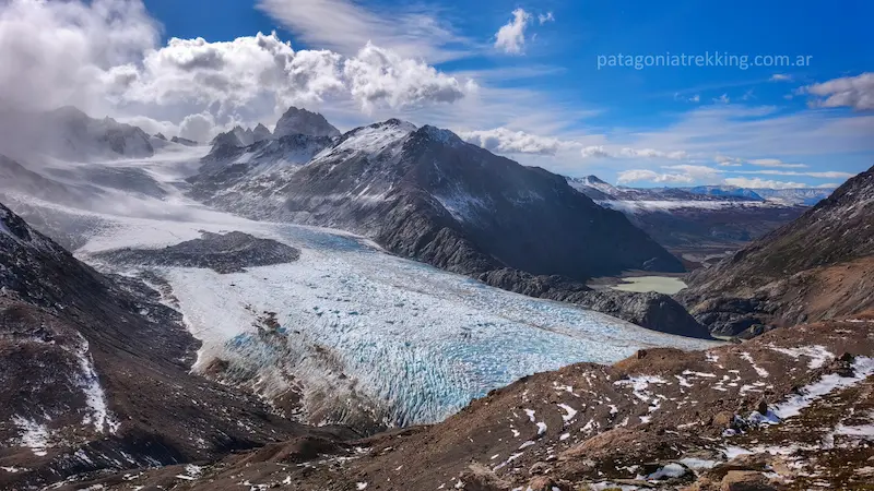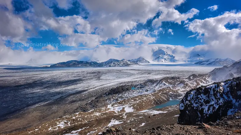 Estos glaciares representan una de las reservas de agua dulce más importantes del planeta y son indicadores fundamentales del cambio climático global. Observar la inmensidad del Glaciar Viedma desde esta altura permite dimensionar la escala real del terreno que se transita.